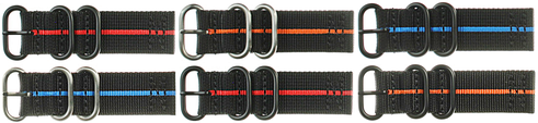 Hier nun, von oben nach unten, alle derzeitig verfügbaren Ribb Nato Bänder: